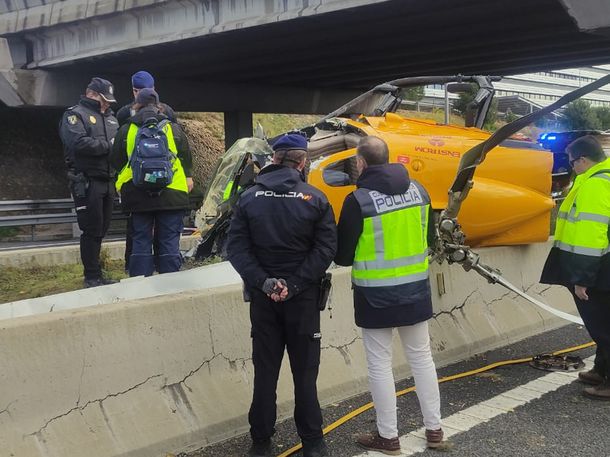 Dentro de las posibles causas del accidente, los investigadores manejan dos hipótesis: un fallo técnico del helicóptero o una fuerte ráfaga de viento que lo hizo chocar contra uno de los pilares del puente que cruza la M-40 y caer sobre en cantero, según indicó el sitio ABC.