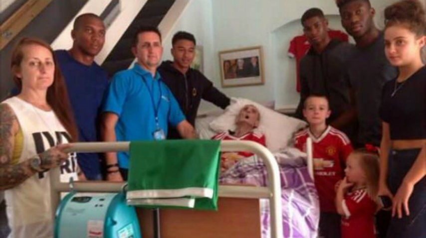 Marcus Rashford, Jesse Lingard, Ashley Young y Timothy Fosu-Mensah pasaron a verlo el jueves pasado a pedido de la nieta del fanático, Kayleigh Lawler Carson, quien inició la campaña en Facebook el 11 de septiembre.