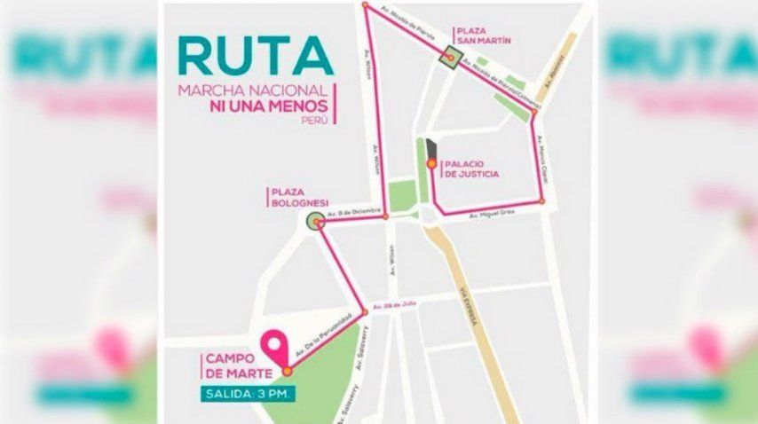La ruta de la marcha iniciará a las tres de la tarde en el Campo de Marte (Jesús María), luego recorrerá la avenida De la Peruanidad y el cruce con la avenida 28 de julio hasta la Plaza Bolognesi.
