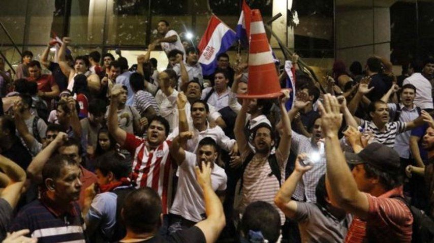 Los incidentes comenzaron después de que 25 senadores votaran a favor del proyecto de enmienda constitucional para habilitar la reelección en las dependencias del Frente Guasú, del ex presidente Fernando Lugo, y sin la presencia del resto de legisladores y del presidente del Senado, Roberto Acevedo. Las protestas más violentas se iniciaron en la tarde del viernes en la Plaza de Armas, junto al Congreso paraguayo, edificio asaltado e incendiando por los manifestantes.