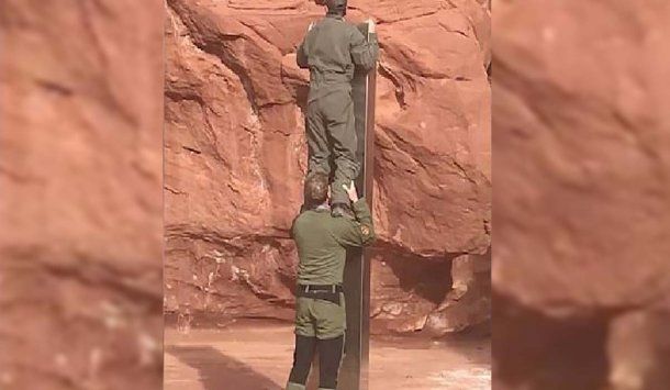 Las imágenes muestran como un pilar de color gris metálico yace expectante en una cueva en medio del desierto. Sin ninguna otra marca que lo identifique, el monolito no fue identificado por ninguna organización gubernamental, por lo que miles de teorías se compartieron a través de las redes.