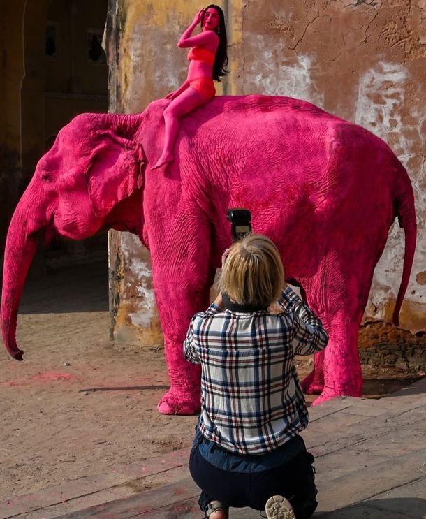 Una fotógrafa rusa quedó en el centro de la polémica tras pintar de rosa a una elefanta para una sesión de fotos en Jaipur, India. La controversia se intensificó luego de que el animal muriera meses después, lo que generó críticas por parte de organizaciones defensoras de los derechos animales.