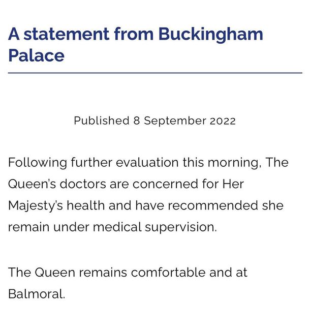 En el texto indicaban que los médicos de la reina estaban "preocupados por la salud de Su Majestad y han recomendado que permanezca bajo supervisión médica".