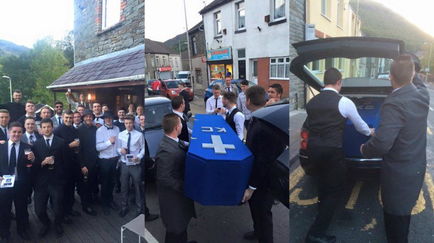 "Hace un par de semanas estábamos todos en el pub y empezamos a decir 'RIP Keiran'. Nadie más lo había visto desde que se puso de novio y no contestaba en nuestro grupo de chat, así que decidimos que si no sale con nosotros vamos a hacer de cuenta que está muerto y le vamos a hacer un funeral", explicó Ben Sullivan, uno de los encargados de la elegía al compañero de copas caído.