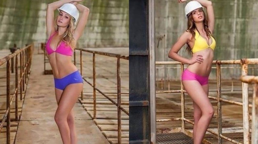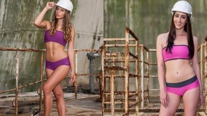 El departamento de comunicaciones de la planta publicó en su cuenta de Facebook las fotos de las chicas en bikini y con un casco blanco. La campaña levantó fuertes críticas. Mirá las fotos.