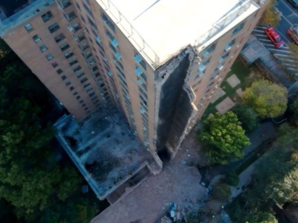 Tal como se puede observar en los videos y fotos tomadas por los vecinos del lugar, la explosión provocó el derrumbe total de una de las esquinas del edificio, la cual quedó reducida a un montón de escombros. En otras imágenes se llega a ver una intensa nube de polvo cubriendo la zona momentos después del colapso.
