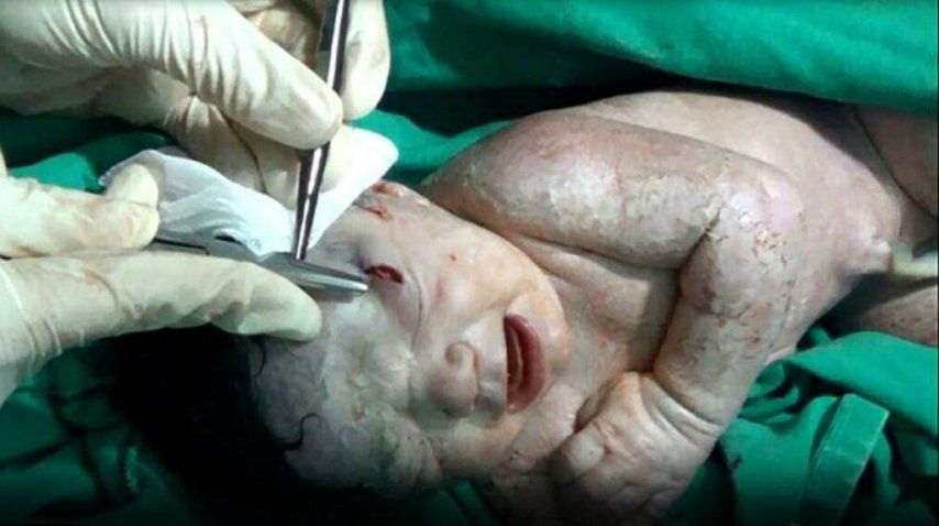 La pequeña llegó al mundo a través de una cesárea de emergencia tras la cual la operaron para extirar el objeto extraño. Las imágenes pueden herir la sensibilidad del lector.