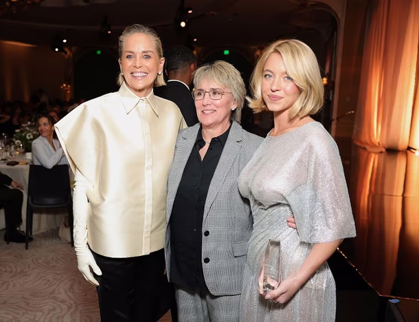 Durante la cena, Sweeney compartió mesa con la histórica boxeadora Christy Martin, a quien interpreta en un biopic que también produce. Con un renovado corte bob, la actriz se mostró relajada y sonriente, acompañada además por otras figuras como Sharon Stone, que no dudó en bromear sobre la polémica y respaldar públicamente a su joven colega. En un evento que celebra el poder femenino, Sweeney volvió a demostrar que el suyo no se limita a la pantalla.
