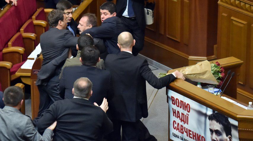La trifulca terminó cuando el presidente de la Rada, Vladimir Groysman, intervino para separar a los legisladores. De más está aclarar que el gobierno de Yatseniuk está en la cuerda floja por estos días ya que Barna reunió al menos 73 firmas para destituirlo.