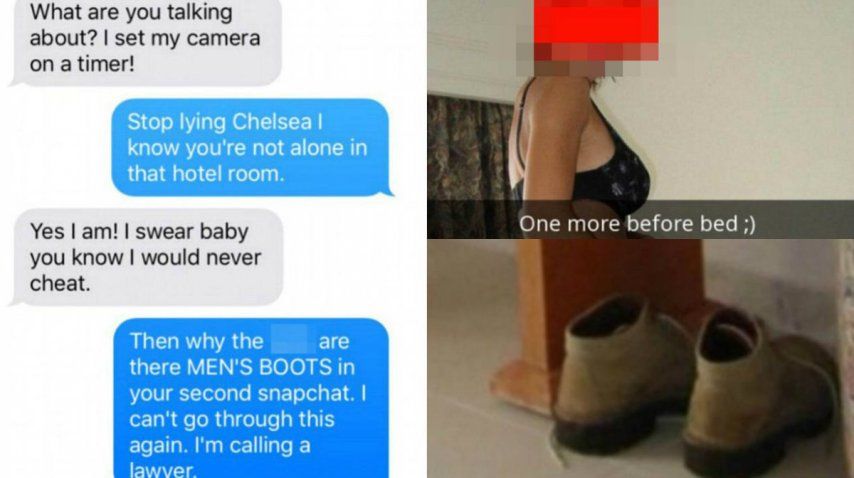 "¿Entonces por qué se ven botas de hombre en tu segundo snapchat? No puedo pasar por esto de nuevo. Voy a llamar a un abogado", lanzó.