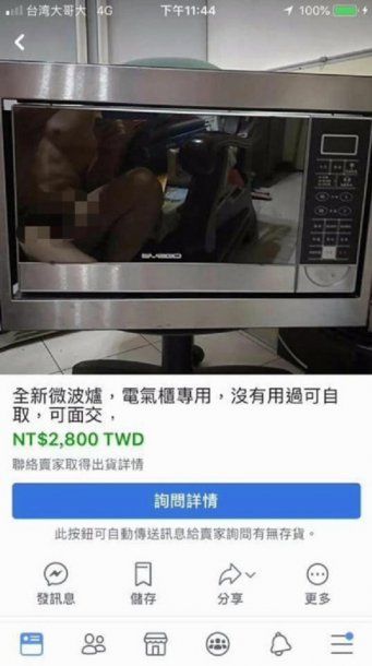 El sujeto intentó vender su horno microondas a través de Facebook, sin darse cuenta que en la foto que publicó para promocionar el electrodoméstico, se veía más que un microondas. En el reflejo de la puerta se veían sus partes íntimas.
