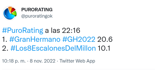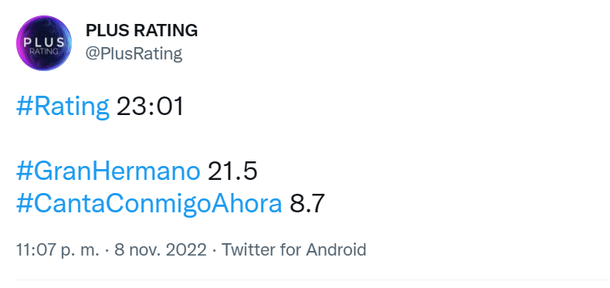 Rating de Gran Hermano del martes 8 de noviembre
