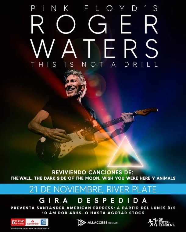 Las localidades para el adiós a Waters, quien el 6 de septiembre y en medio de su recorrida planetaria cumplirá 80 años, tendrán una preventa por 48 horas desde el próximo lunes y desde el miércoles 10 podrán adquirirse a través de Allaccess.com.ar.