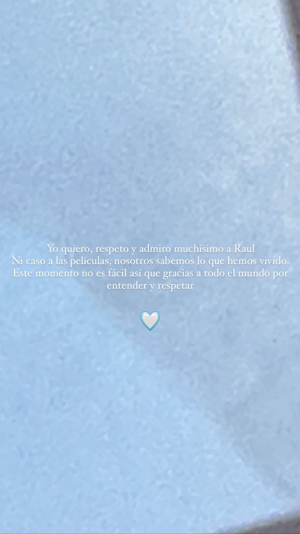 Ahora es la cantante de “Despechá” la que ha querido dirigirse al mundo entero: "Yo quiero, respeto y admiro muchísimo a Raúl. Ni caso a las películas, nosotros sabemos lo que hemos vivido. Este momento no es fácil así que gracias a todo el mundo por entender y respetar", fueron sus primeras palabras.