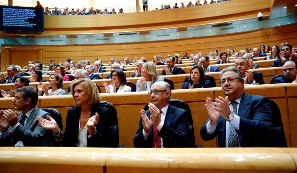 Casi al mismo tiempo que se votaba la independencia catalana, el Senado español aprobó por 214 votos a favor, 47 en contra y una abstención autorizar al gobierno central a intervenir las instituciones de Cataluña para abortar su proceso independentista.