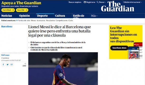 The Guardian, el medio inglés, también replica lo que decía el burofax que envió el rosarino a las oficinas de los dirigentes del catalanes.