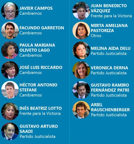 Del bloque de Cambiemos son cinco diputados los que aún no se manifestaron ni de un lado ni del otro. Se trata de Javier Cambos, Facundo Garreton, Paula Mariana Olivieto, José Luis Riccardo y Héctor Antonio Stefani.