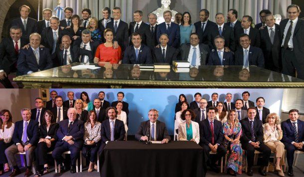 Mauricio Macri está de salida y con él se retiran de la Casa Rosada sus 11 ministros y el jefe de su Gabinete, Marcos Peña. En su lugar se preparan para entrar en funciones Alberto Fernández y su equipo formado por Santiago Cafiero como jefe de Gabinete y los titulares de 20 carteras.