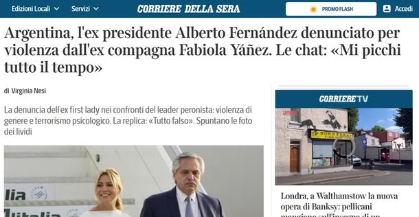 Era cuestión de tiempo para que se regara la noticia de que el expresidente Alberto Fernández fue denunciado por su expareja Fabiola Yáñez por violencia de género. Tras la viralización de las imágenes de la otrora primera dama con moretones en la cara, los principales medios de España e Italia se hicieron eco del caso.