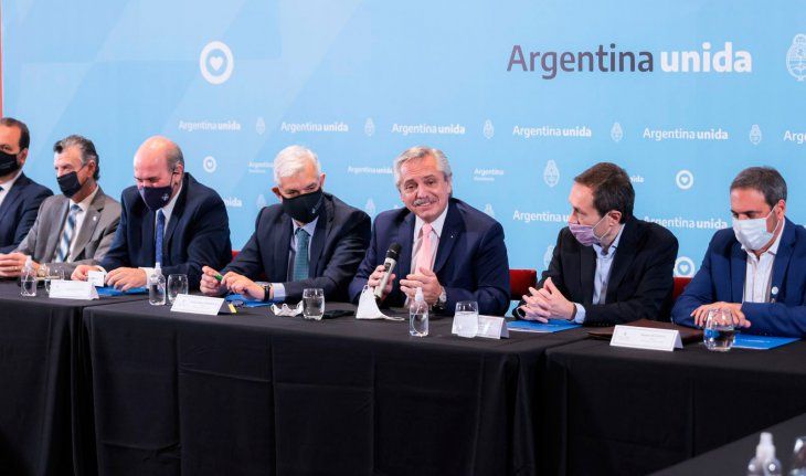 ¡El presidente de la Nación, Alberto Fernández, sostuvo este jueves que “es un momento de estar todos juntos, sentados en la misma mesa, discutiendo las diferencias y buscando ponernos de acuerdo en la mayor cantidad de cosas posibles para así poder abrir puertas y salir adelante”, al encabezar en Casa Rosada el lanzamiento del proyecto de Desarrollo Sostenible de la cadena vitivinícola, consensuado en el Consejo Económico y Social.