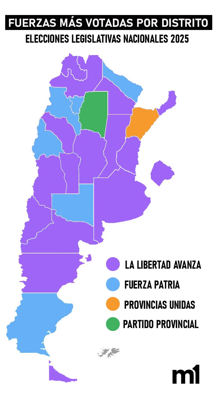 El peronismo, en tanto, ganó en seis provincias, mientras que en Corrientes y Santiago del Estero se impusieron fuerzas locales. De esta forma, el bloque libertario logró consolidar una base parlamentaria que le permitirá mantener el control político y la capacidad de veto en el Congreso.