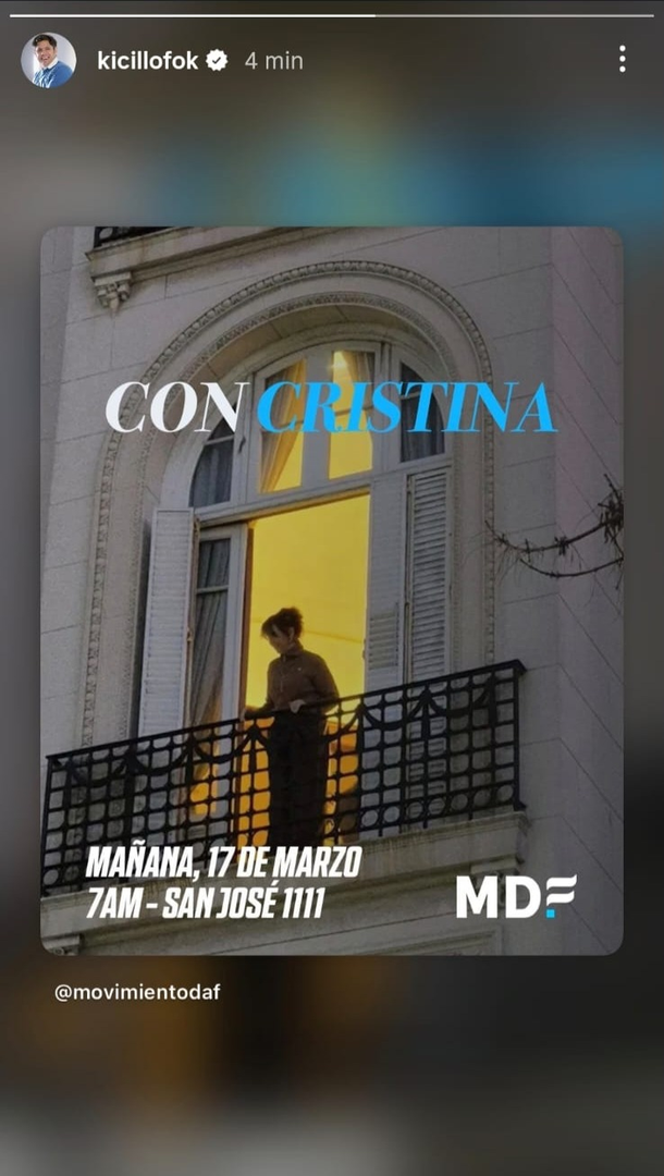 La convocatoria, replicada por el mandatario provincial, cita a la militancia para este miércoles a las 7:00 AM en las inmediaciones del domicilio de la exmandataria, en San José 1111, donde cumple con la prisión domiciliaria.