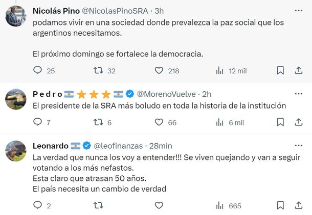 Inesperadamente, el bloque de libertarios se mostró ofuscado por las declaraciones del titular de la SRA, por lo que Pino debió salir a aclarar que con sus posteos no estaba apoyando a ningún candidato en particular.