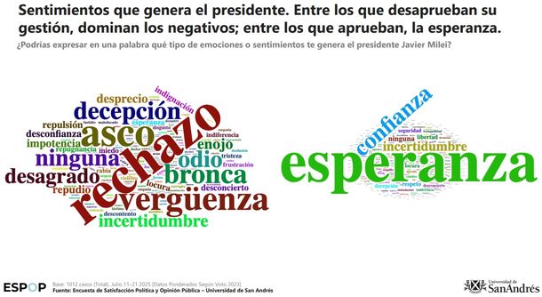 El último sondeo realizado por la Universidad de San Andrés (UdeSA) dejó en evidencia la profundización en la espiral descendente de la aprobación de la gestión que encabeza Javier Milei. La Encuesta de Satisfacción Política y Opinión Pública (Espop) elaborada por el Laboratorio de Observación de la Opinión Pública (LOOP) de la UdeSA reveló que en julio la aprobación a la gestión libertaria cayó 7 puntos porcentuales respecto de mayo y bajó a 42% frente al rechazo que subió al 55%.