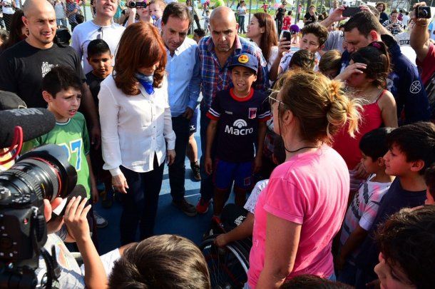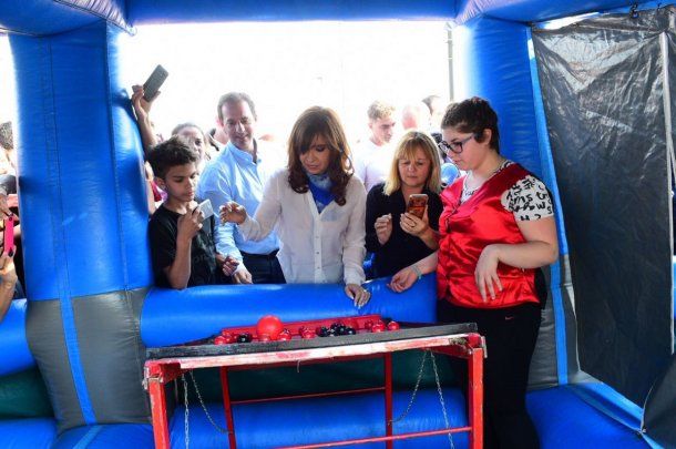 Cristina compartió con cientos de chicos y sus familias actividades recreativas, artísticas y deportivas, disfrutó de la kermese y presenció los juegos que los niños con discapacidad realizaron en los peloteros.