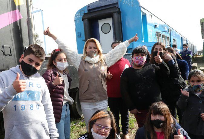 Fabiola Yañez visitó este jueves la localidad bonaerense de Castelli, donde recorrió el Tren de Desarrollo Social y Sanitario 'Dr. Ramón Carillo' del Ministerio de Desarrollo Social de la Nación, junto al ministro Daniel Arroyo y la intendenta anfitriona, Azucena Traverso.