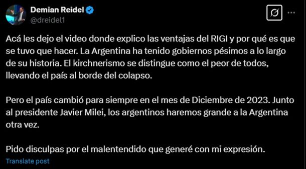 Tras confirmarse su renuncia en medio de denuncias por corrupción, Demian Reidel será recordado por una frase que marcó su salida del círculo presidencial y una crisis política que terminó por sepultar su rol como principal asesor económico del presidente Javier Milei.