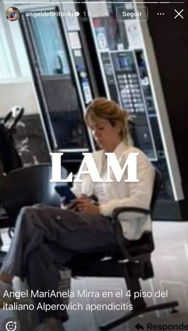 De Brito compartió en redes sociales imágenes enviadas por sus seguidores, que mostraban a Marianela Mirra recorriendo los pasillos del hospital, con una expresión seria y visiblemente preocupada. Una usuaria, que envió una de las fotos, escribía: "Ángel, Marianela Mirra en el cuarto piso del Italiano".