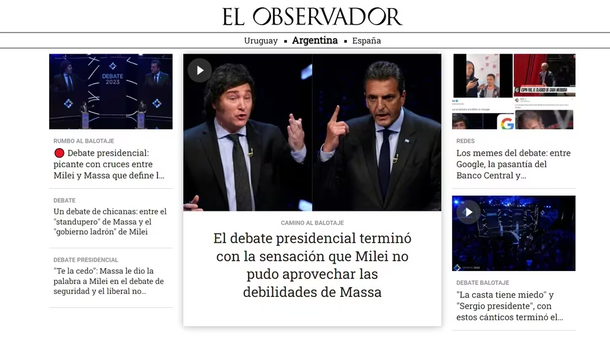 "Massa y Milei cruzan fuertes acusaciones en un debate presidencial clave", consignó el diario chileno El Mercurio, mientras que el diario uruguayo El País señaló sobre el debate que "Massa sacó ventaja en un encuentro donde predominó el ataque".