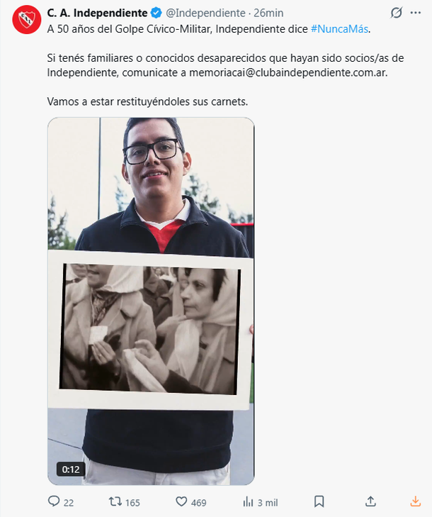Club Atlético Independiente: Además de su mensaje conmemorativo, el club de Avellaneda relanzó una valiosa y necesaria campaña administrativa sobre los derechos humanos.