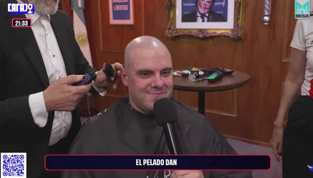 Acompañado por Karen Reichardt, el ex PRO fue al canal de streaming Carajo, donde el Tano de Il Figaro le pasó la máquina. Pero no fue el único, ya que el conductor Daniel Parisini, conocido como "Gordo Dan", también quedó pelado, al igual que otros integrantes del programa La Misa.