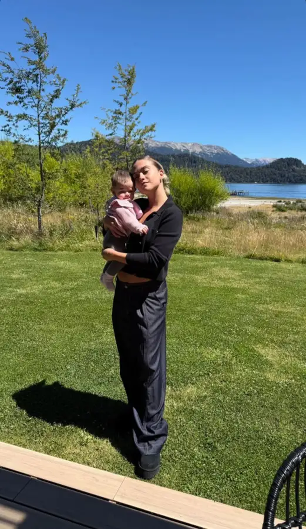 La pareja del exjugador de la Selección Argentina aprovechó la oportunidad para compartir imágenes del impresionante paisaje de la región, mientras que también publicó fotos junto a su hija, disfrutando de la tranquilidad del lugar.