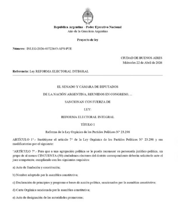 En paralelo, el proyecto introduce modificaciones en la Ley de Partidos Políticos, con un endurecimiento de los requisitos vinculados a la afiliación, la vida interna de las fuerzas y su reconocimiento legal. La intención oficial es establecer criterios más estrictos para la constitución y funcionamiento de las agrupaciones.