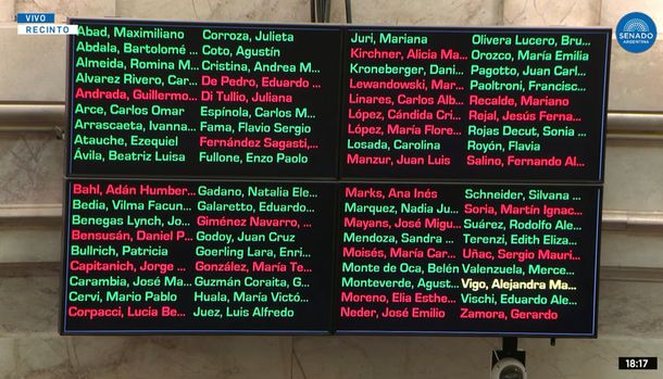 En tanto, hubo 27 votos en contra y una abstención, que no fueron -por supuesto- suficientes para salvar los derechos laborales de los trabajadores.