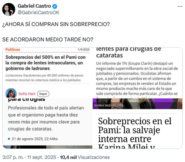 Por esa razón, los internautas estallaron al ver el tuit de Adorni y lejos de atender el motivo del mensaje, se preocuparon únicamente por traer sobre la mesa lo que podría ser el mayor papelón y escándalo de la gestión libertaria, y que ya tuvo su eco en las elecciones legislativas bonaerenses.
