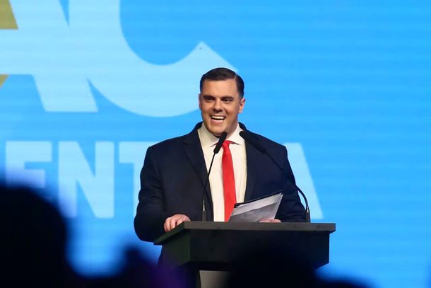 Se trata de Daniel Parisini, conocido en redes como "Gordo Dan", uno de los tantos tuiteros de Javier Milei, que suelen acompañar a Santiago Caputo a diferentes eventos, Además, conduce un programa en el canal de streaming Carajo.