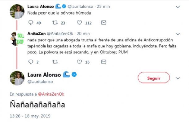 "Ñañañañañaña": la bizarra respuesta de Laura Alonso a una crítica en Twitter