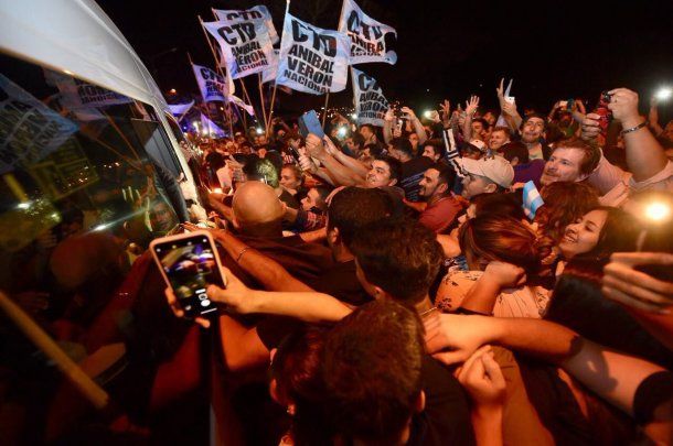 Con carteles, cánticos y banderas, militantes aguardaron desde muy temprano la llegada de la ex presidenta en un vuelo regular de Aerolíneas Argentinas a las 20.50.
