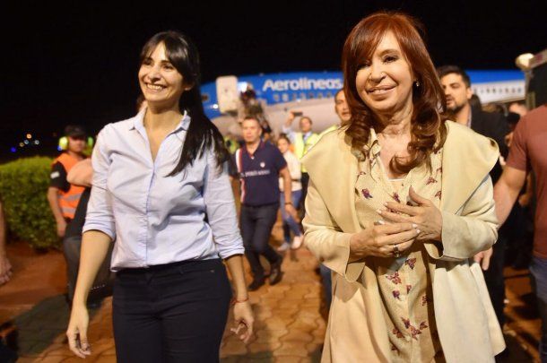 La compañera de fórmula de Alberto Fernández arribó a Misiones en vuelo regular de Aerolíneas Argentinas. Este sábado presentará "Sinceramente" en el polideportivo Finito Gehrmann.