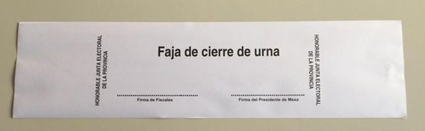 Luego de este procedimiento, la urna se vuelve a armar y se coloca una faja ancha de seguridad, que cruza todo el lado superior de la urna y es firmada por las autoridades de mesa y los fiscales partidarios, quienes deben garantizar a partir de entonces que ese sistema de seguridad no sea violado.