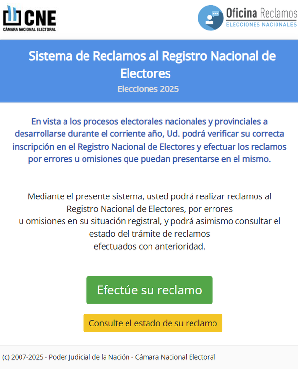Los reclamos podrán estar relacionados con el número y clase de documento, apellido, nombre y domicilio de los electores. Solo podrán modificarse los datos personales o domicilios realizados ante el Registro Nacional de las Personas (RENAPER) con anterioridad al 19 de abril.