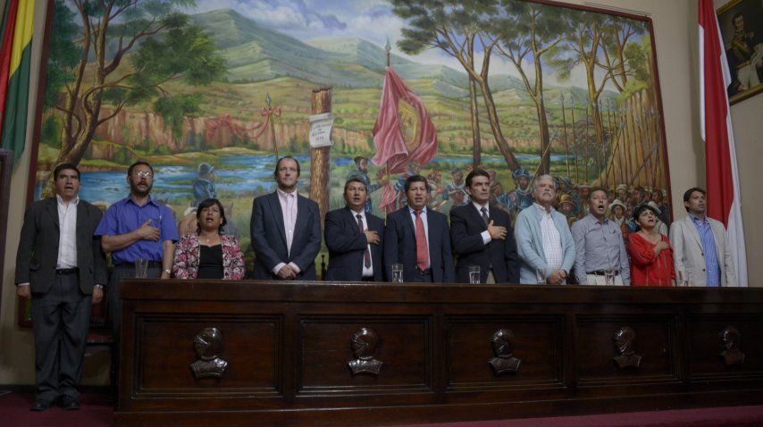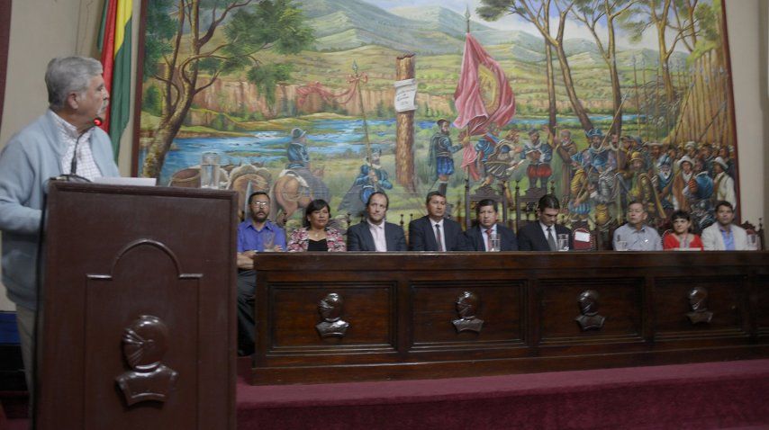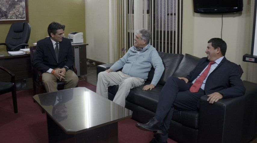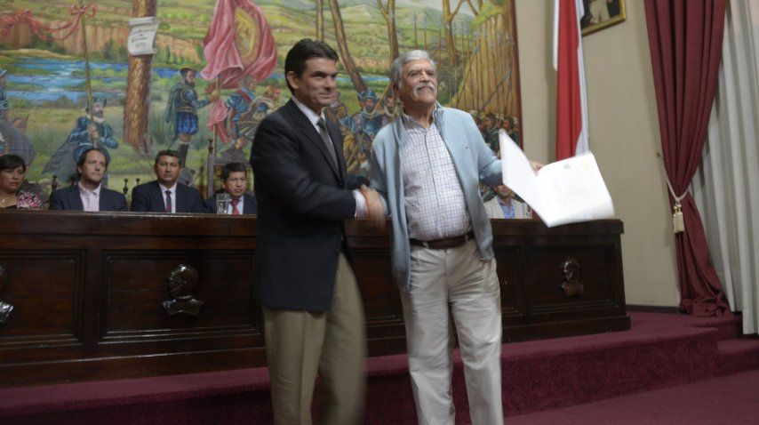 Luego, De Vido y el resto de la comitiva que incluye a directivos del INVAP, de la CONEA y ARSAT, entre otros, fueron trasladados hasta la municipalidad, donde el alcalde Rodrigo Paz Pereyra les otorgó la ordenanza municipal 035 por la cual De Vido fue declarado huésped de honor.