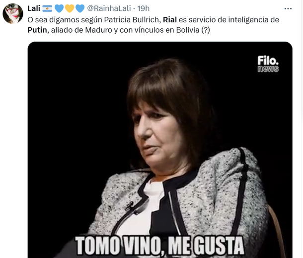 Luego de la que la ex montonera y actual ministra de Seguridad de la Nación, Patricia Bullrich, manifestara que Jorge Rial, entre otros, es parte de una movida para perjudicar al Gobierno nacional en forma conjunta con Rusia y Venezuela, estallaron las redes sociales y los memes no se hicieron esperar.