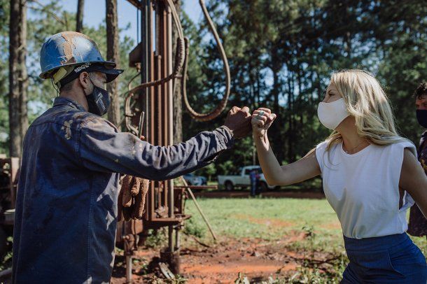 La Primera Dama recorrió las obras que darán agua potable en un plazo de tres meses a familias de la comunidad Guaraní Tekoa Sapucay, del municipio de Hipólito Yrigoyen, y a los municipios de Corpus Christi, Ruiz de Montoya, Gobernador Roca, San Ignacio y Posadas en Campo Bauer.