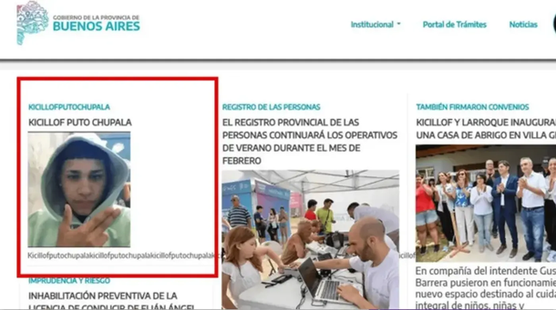 Durante el tiempo que la web estuvo comprometida, los visitantes que ingresaron a la sección de noticias del sitio oficial pudieron ver una imagen de un joven encapuchado realizando un gesto con su mano simulando un arma, acompañada de un texto que repetía reiteradamente un insulto dirigido a Kicillof.