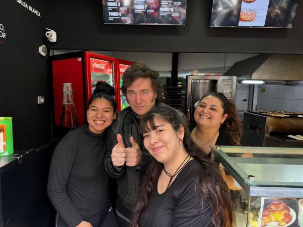 Milei llegó al local de Callao y Bartolomé Mitre en compañía de su hermana y secretaria General de Presidencia, Karina Milei; el vocero presidencial Manuel Adorni; y el jefe de Gabinete, Guillermo Francos. Entre fotos y saludos, el libertario ingresó al comercio para saludar y felicitar a los empleados que "socorrieron" a Fran Fijap.